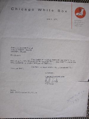 Autographed letter by Bill Veeck on Chicago White Sox Stationary