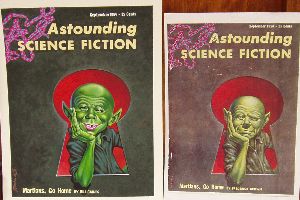 Parody of Kelly Freas Original artwork to the cover of John W. Campbell's Astounding Science Fiction, September 1954.