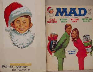 Cover logo for MAD Issue No. 188, January 1977. Alfred as Santa Claus.