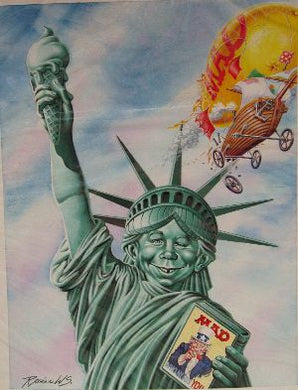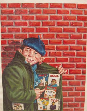 Recreation to the Cover of the 12th Annual Edition of The Worst of MAD. Alfred is a flasher.